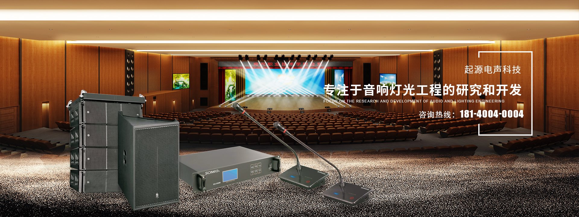 起源電聲科技專注于音響燈光工程的研究和開發(fā),承接大型舞臺(tái)燈光音響系統(tǒng)、智能化會(huì)議音響系統(tǒng)、KTV音響工程、家庭影院、廣播工程
